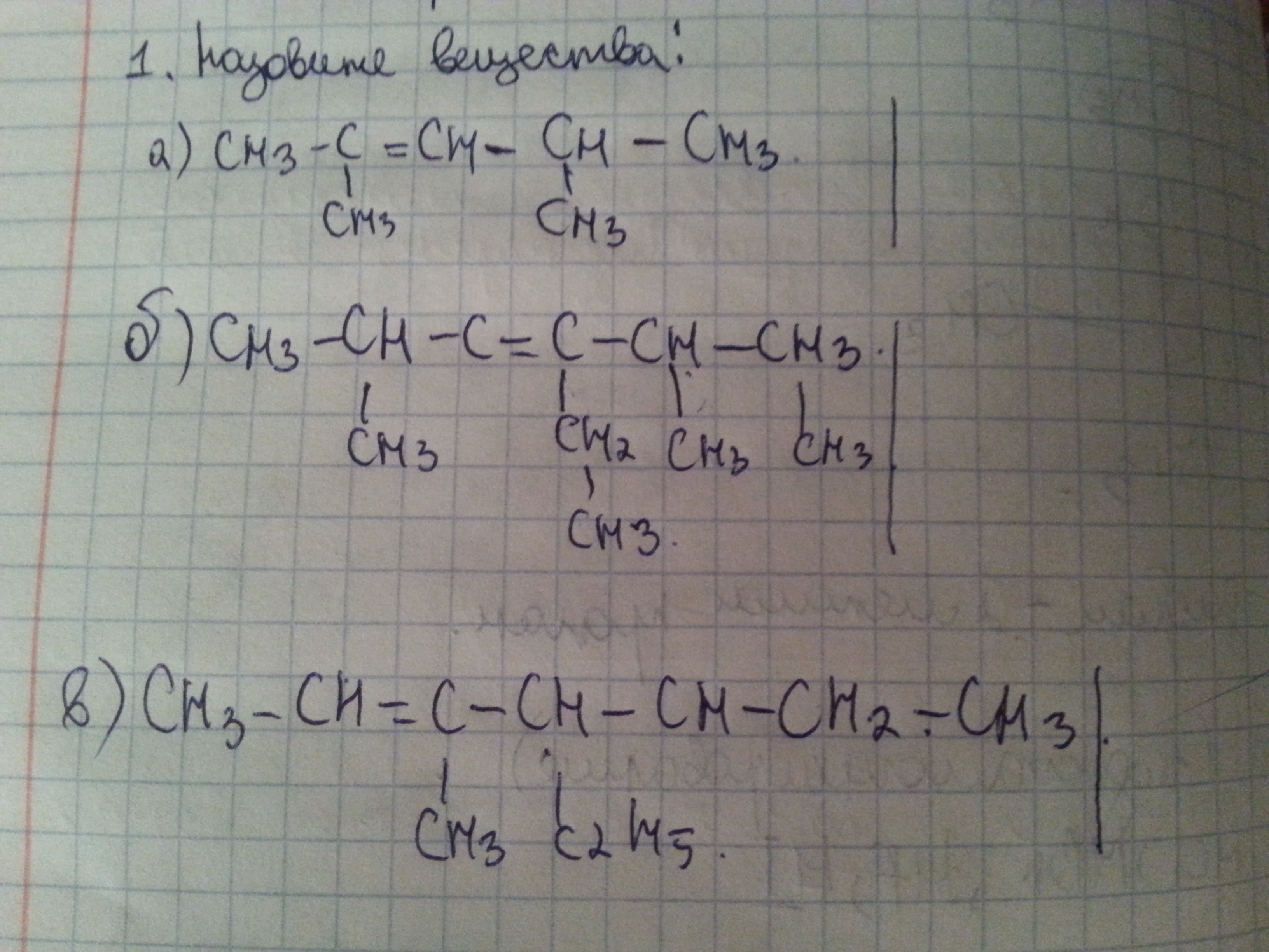 1. а) 2,4-диметилпентен-2 (нумерация атомов С слева - ближе кратная связь)