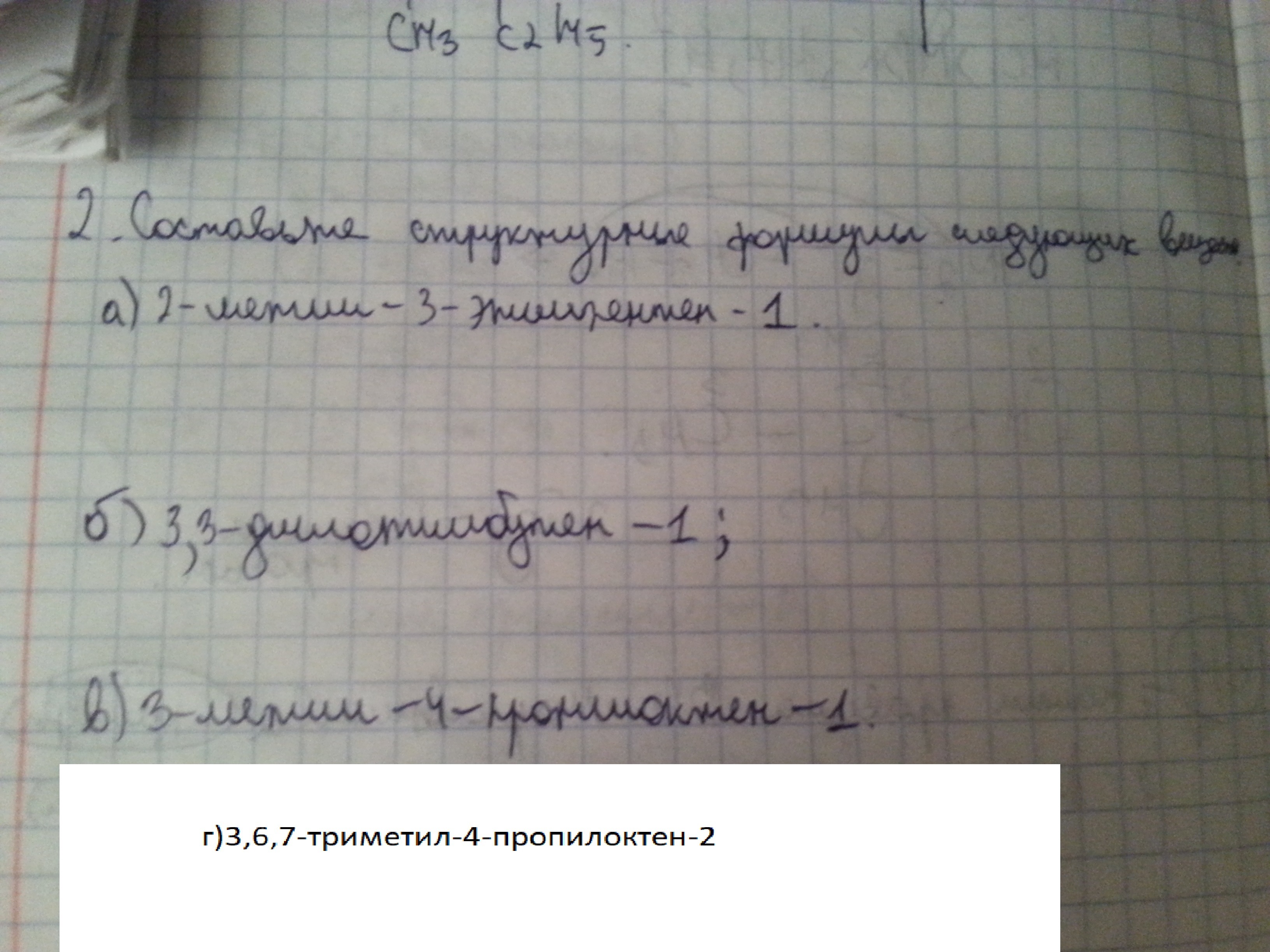в). В формуле в задании ошибка: третий атом С справа надо СН2 (написано СН). Название: 3-метил-4-этилгептен-2
