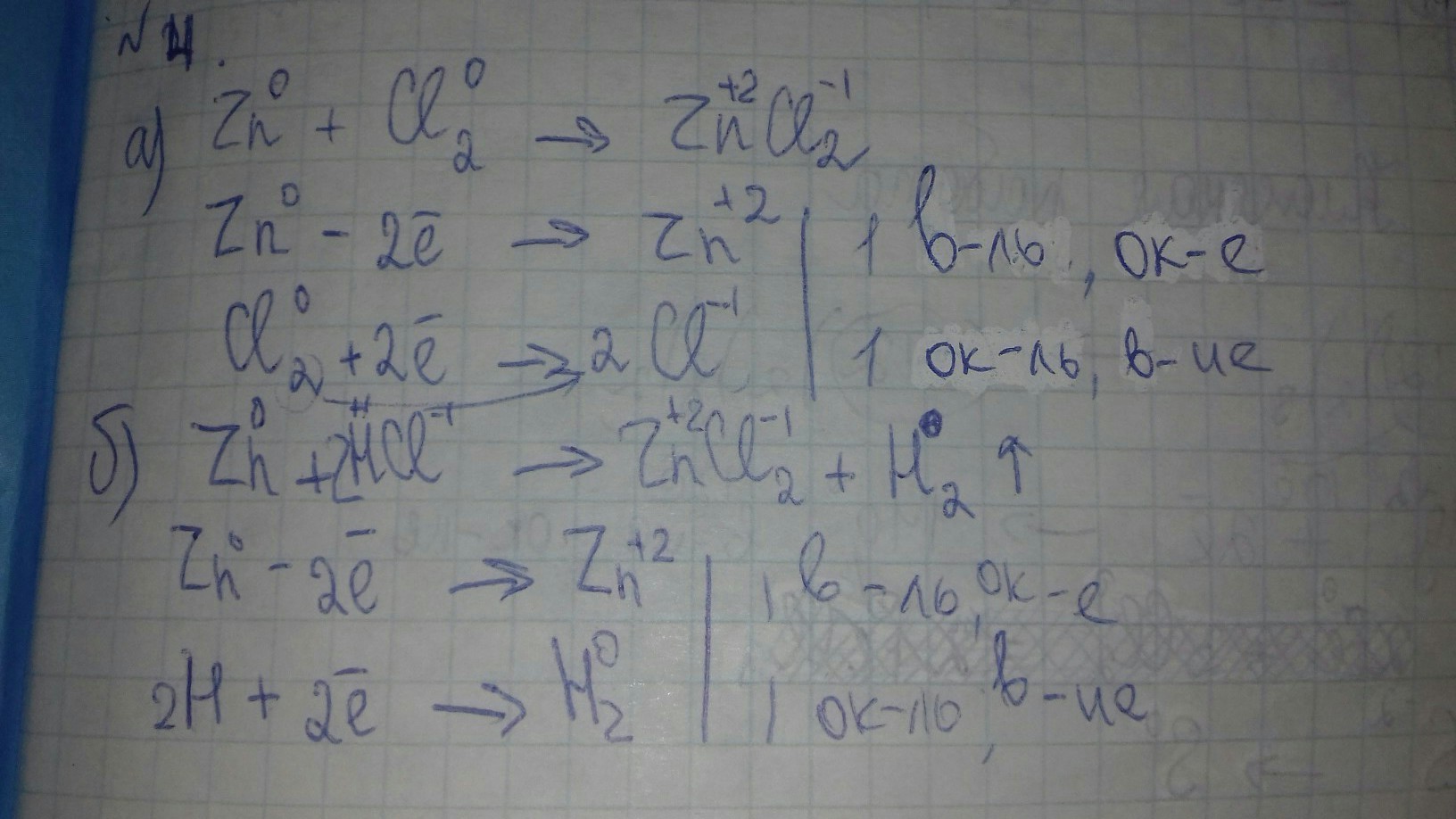 Смотрим справа. Ага. А тут уже обо элемента имеют соседа. У хлора постоянная со -1(эту цифру ставим над хлором), а цинк уже высчитываем. ...+(-2)(сразу умножила -1 на 2) = 0. Что должно быть на месте троеточия? +2. Значит у цинка со стала +2.