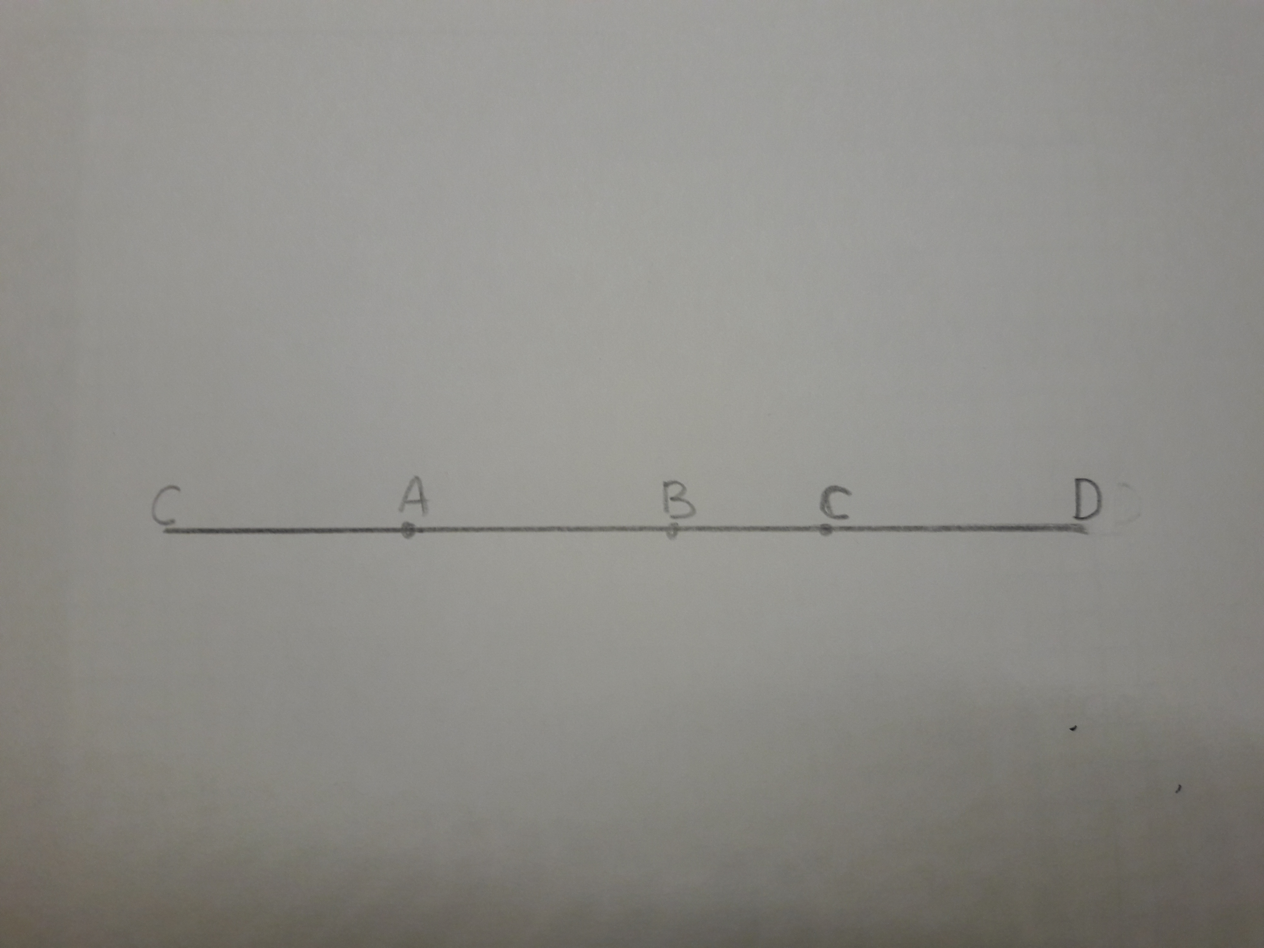Построй луч CD и отметь на нем точки А и В так, чтобы точка В находилась между точками С и А. Должно получиться три луча и три отрезка