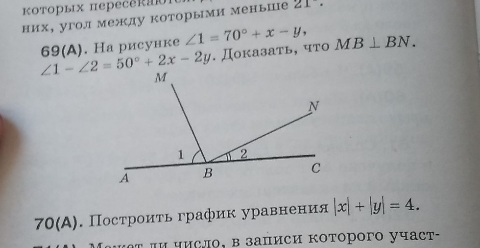 69. ∠АВС = 180 = ∠1 + ∠MBN + ∠2