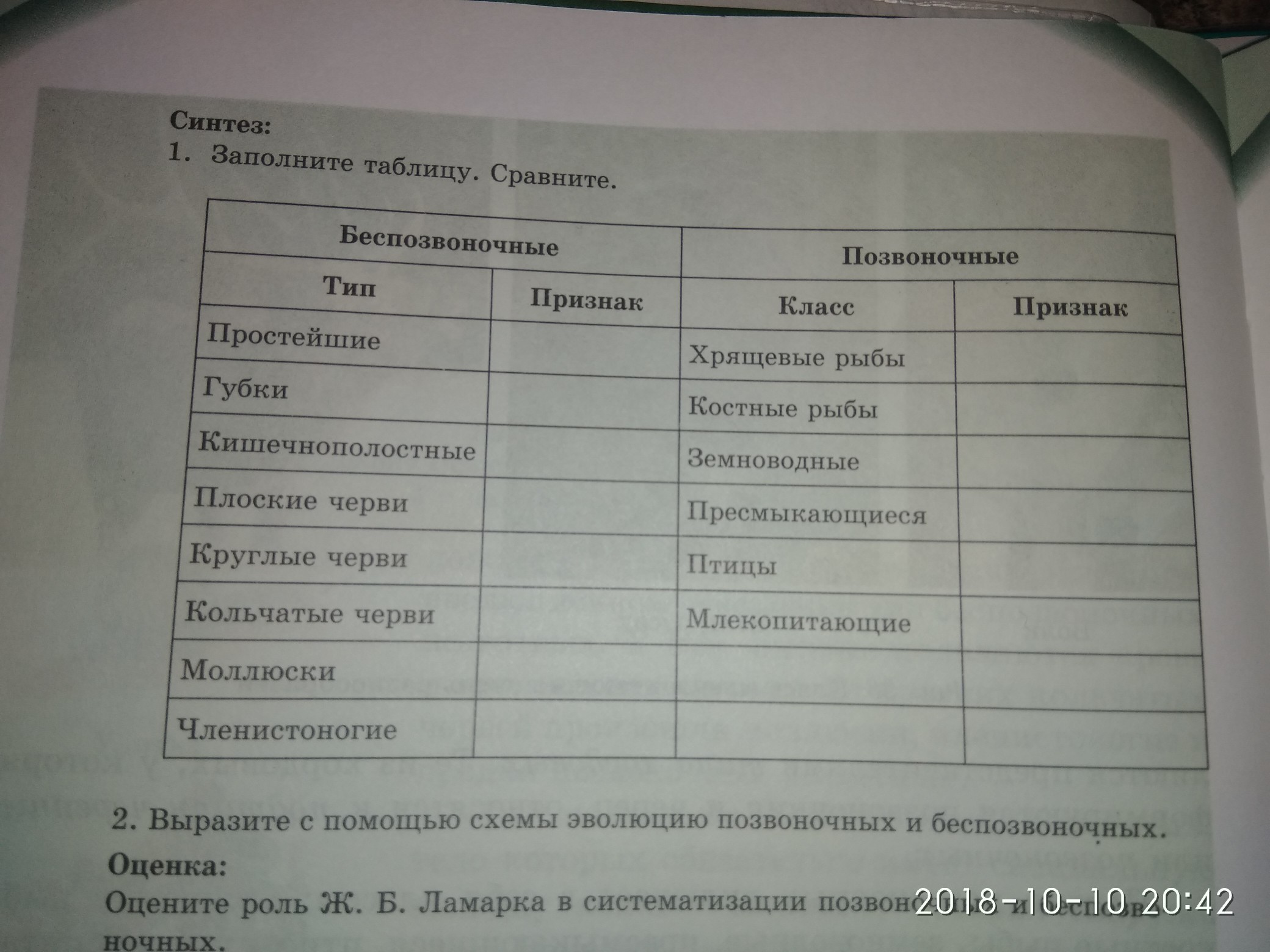 1)Одноклеточность 2)Органы и ткани отсутсвуют 3)Имеют одну полость тела 4)полость тела отсутствует 5)Тело веретенообразное 6)Тело сегментированно в видео колец. 7)Наличие раковины 8)Членистые конечности 9)Хрящевой скелет 10)Костяной скелет 11)Трехкамерное сердце 12)Хладнокровность 13)Воздушные мешки 14)Вскармливание потомства молоком