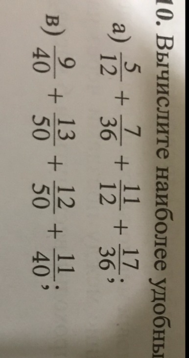 а)(5/12+11/12)+(7/36+17/36)=16/12+24/36=48/36+24/36=72/36=2