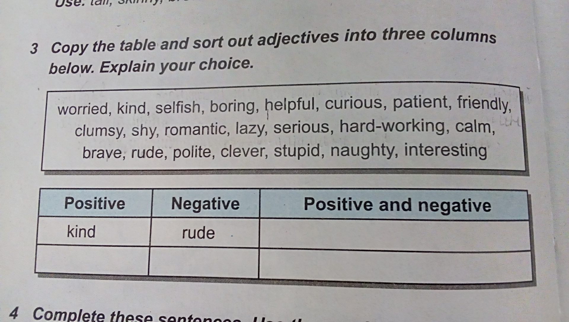 Negative:rude,selfish,clumsy,lazy,stupid,naughty