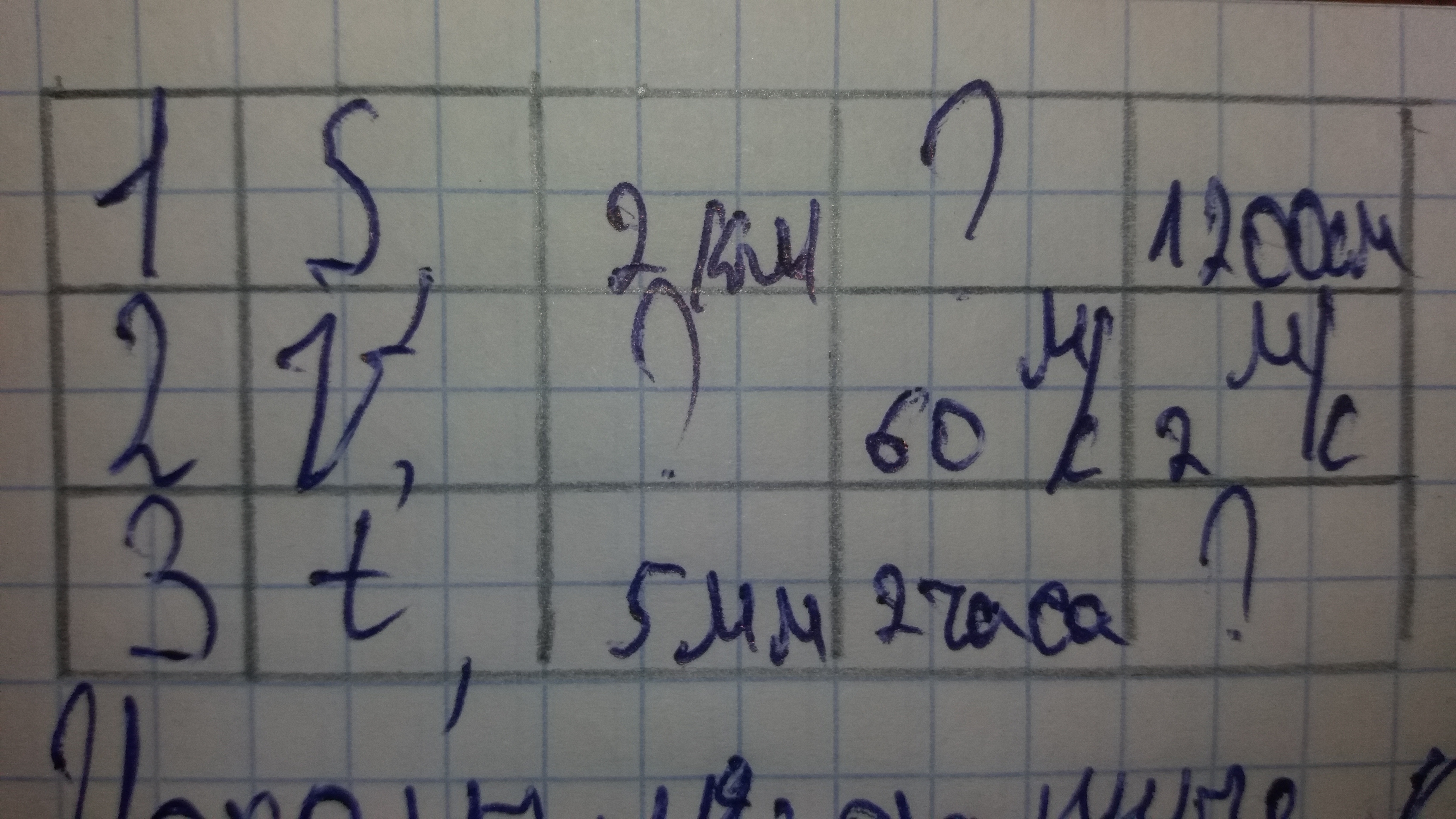 3) t=S:V (1200см переведем в метры, получается 12м)