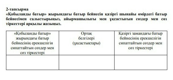 Қобыланды батыр елін жаудан қорғаған Қазіргі кездегі батырлар Отынның қорғайды Ұқсастығы екіуіде батырлар Өз елі үшін бəріне дайын