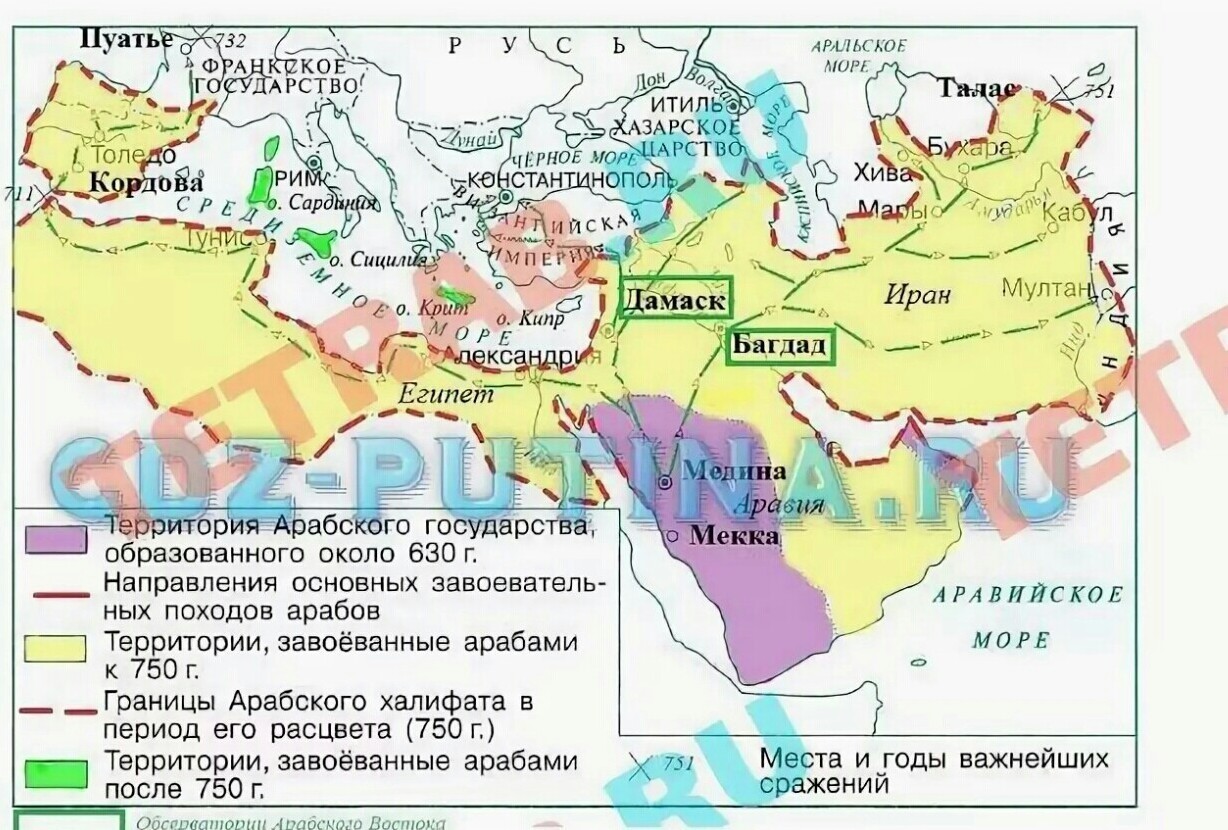 покажите стрелками завоевательные походы арабов ( не менее 2 государств). Назовите 2 основных последствия арабских завоеваний