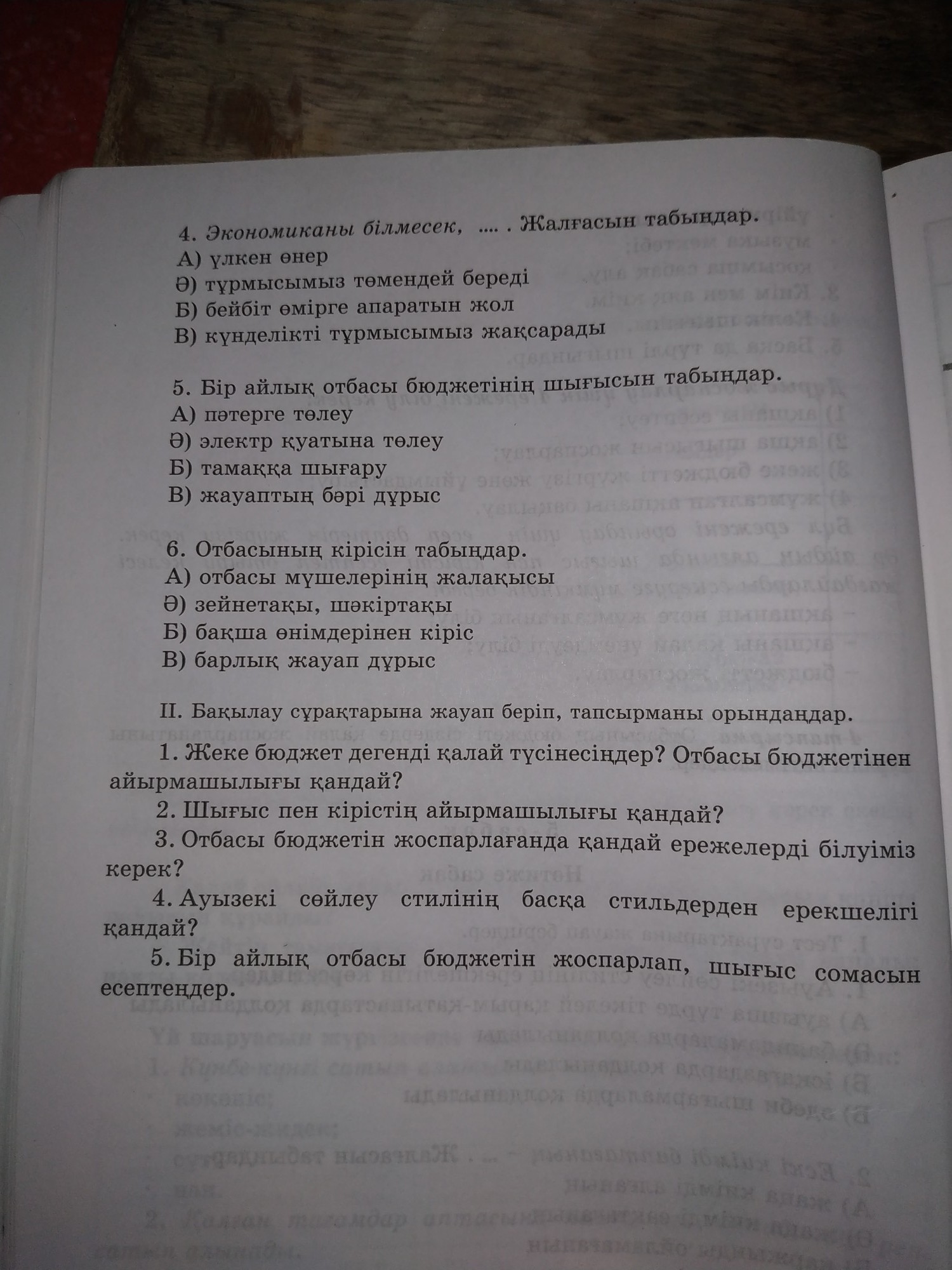 1)Жеке бюджетте біз акшаны тек өзіңіздің керегімізге жумсаймыз, ал отбасы бюджетінде тапкан акшамызды бар отбасымызбен болисемиз