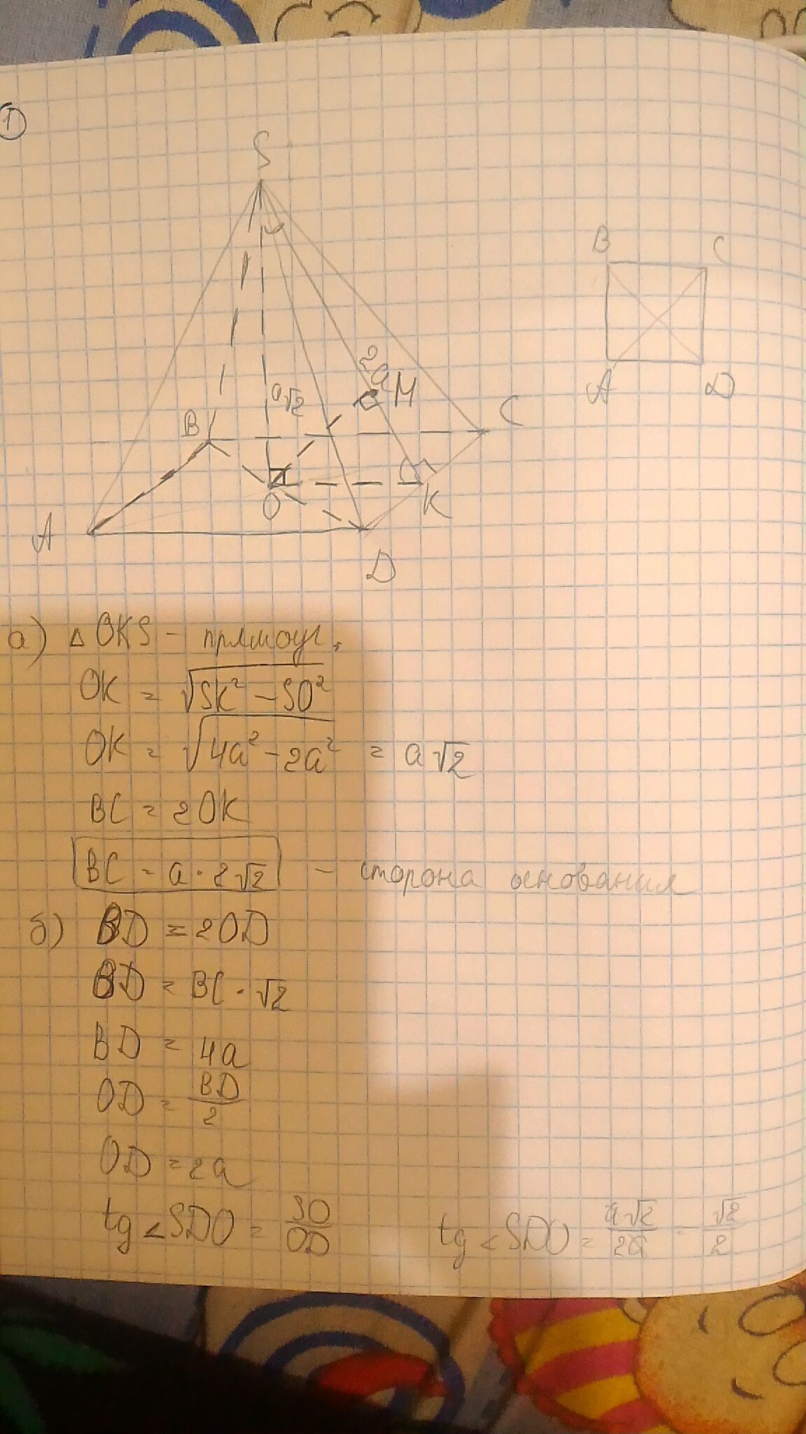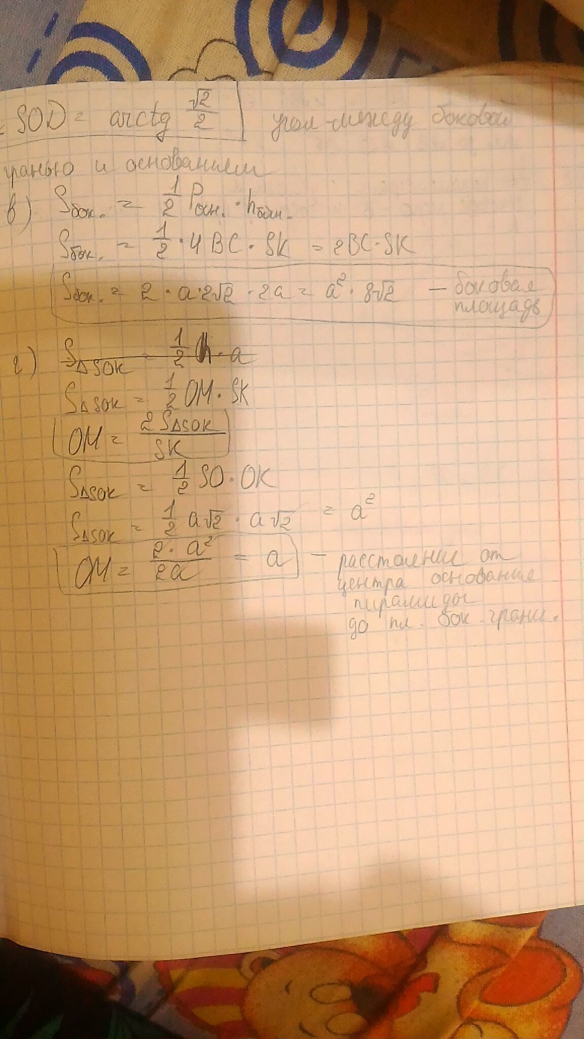 Всё закончила, там в основании квадрат, а SOK -прямоугольный равнобедренный треугольник. Поэтому всё просто находится.