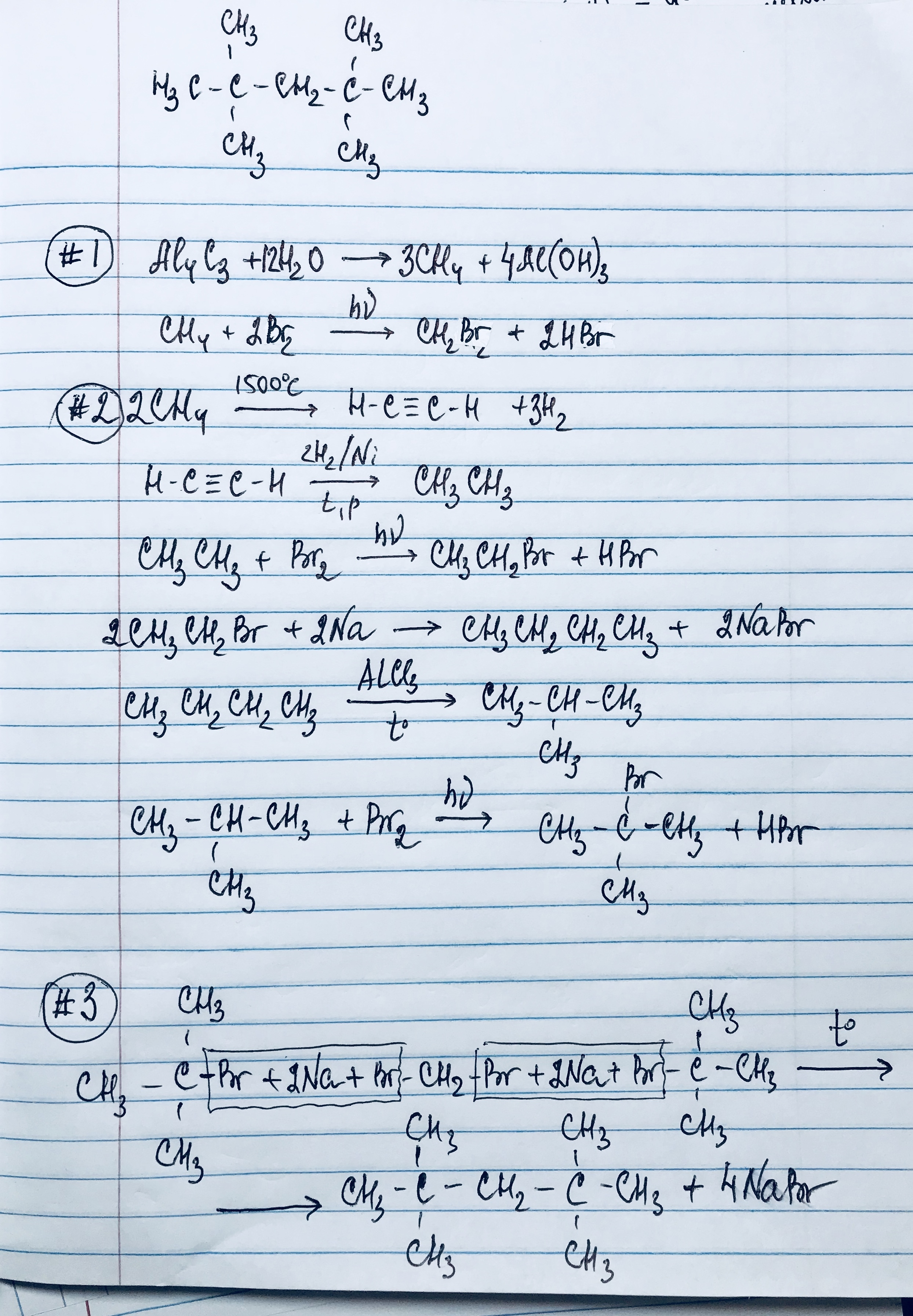 Предложите возможный способ получения 2,2,4,4-тетраметилпентана из неорганических соединений