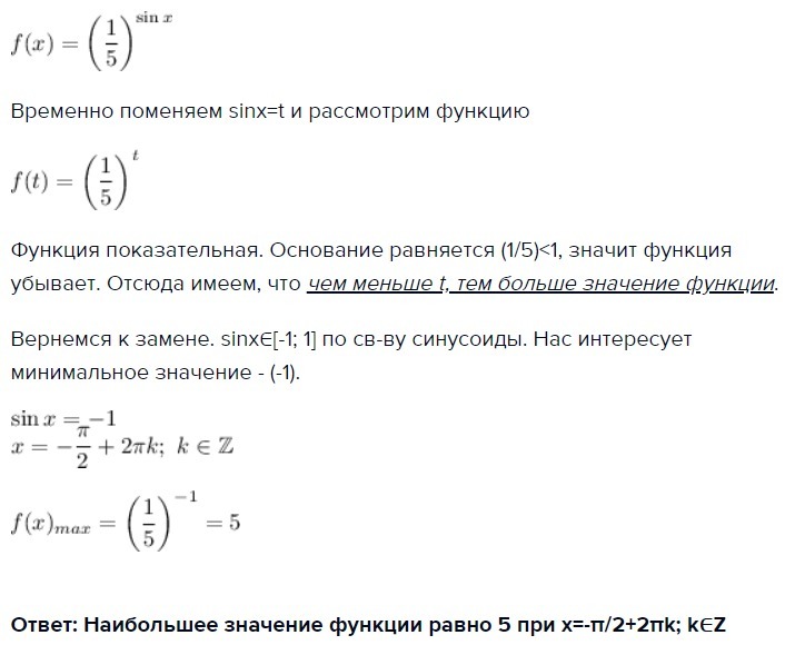 Ответ: Наибольшее значение функции равно 5 при x=-π/2+2πk; k∈Z