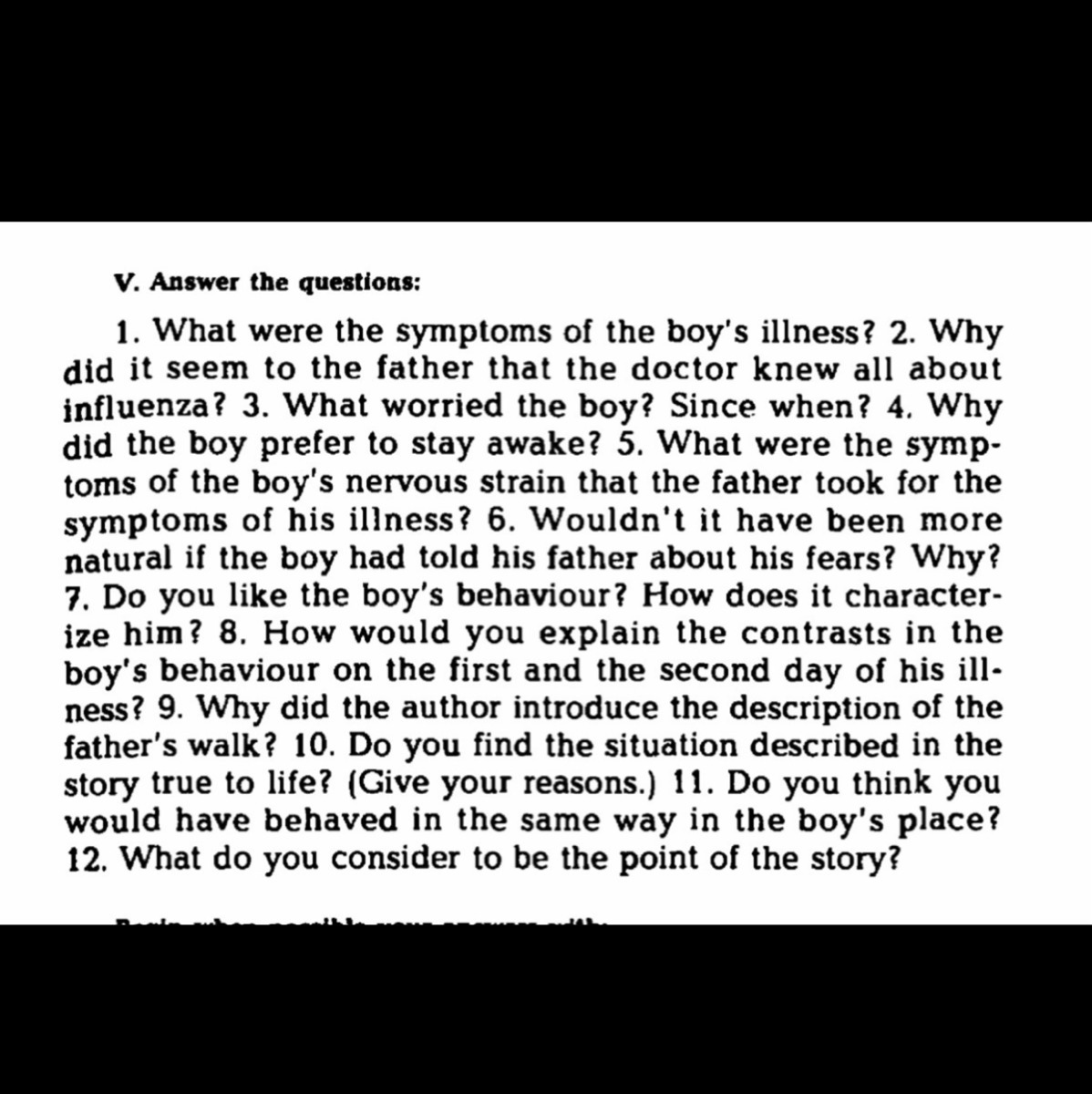 7 Yes, I like it. The boy's behaviour shows that he was a brave boy and he was worried about other people.