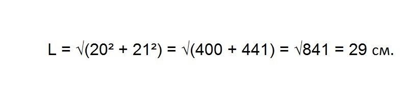 L-расстояние, равно гипотенузе треугольника с катетами 20 и 21 сантиметра