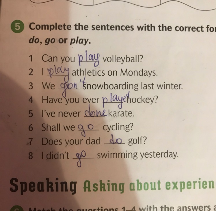 3. We don't go snowboarding.