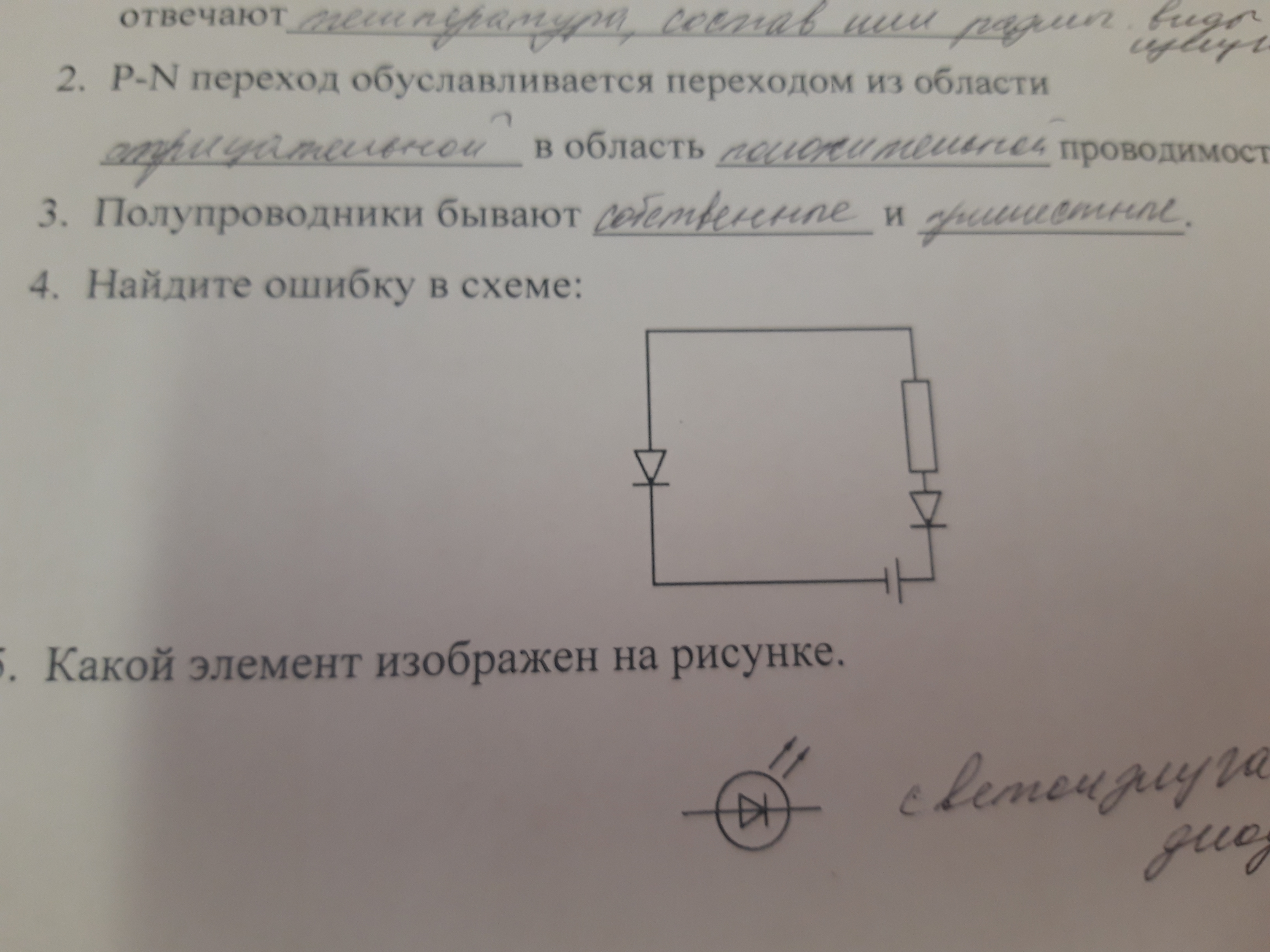 На схеме последовательно включенные диоды и источник питания - гальваничесий элемент. Полярность элемента не та - ток не пойдет