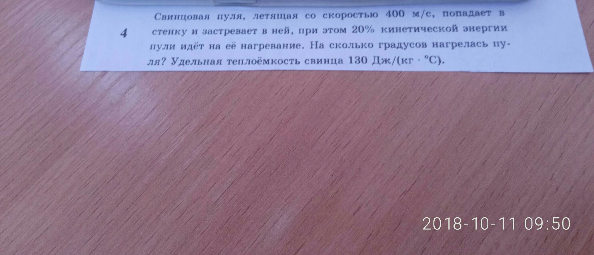 По закону сохранения энергии 0,2*m8V^2/2=c*m*dt