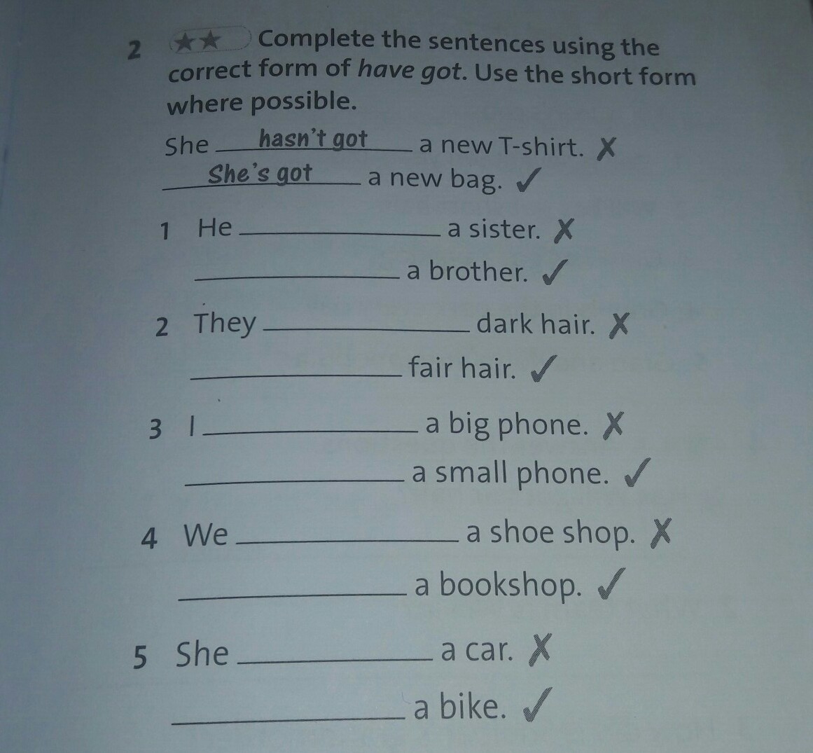1. He hasn' t a sister. He's got a brother