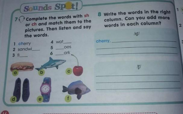 [tʃ]: cherry,sandwich,watch,kitchen,chicken,child.