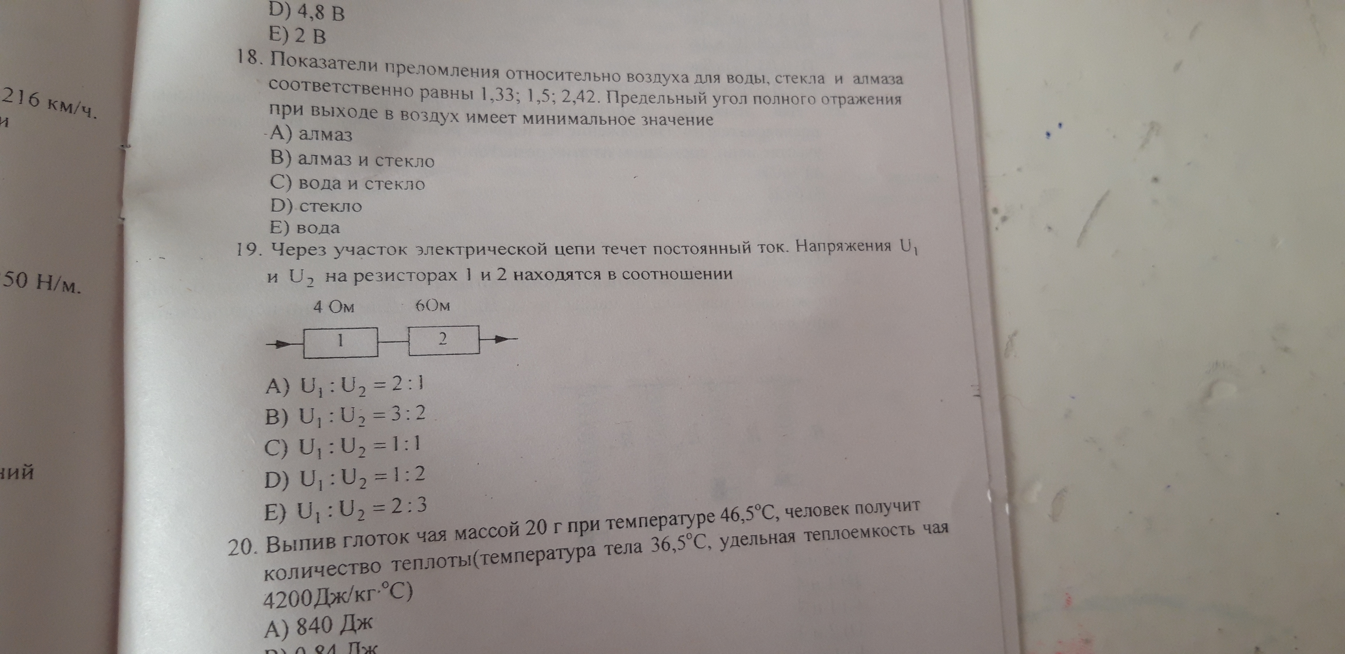 Правильный ответ Е) U1:U2 = 2:3