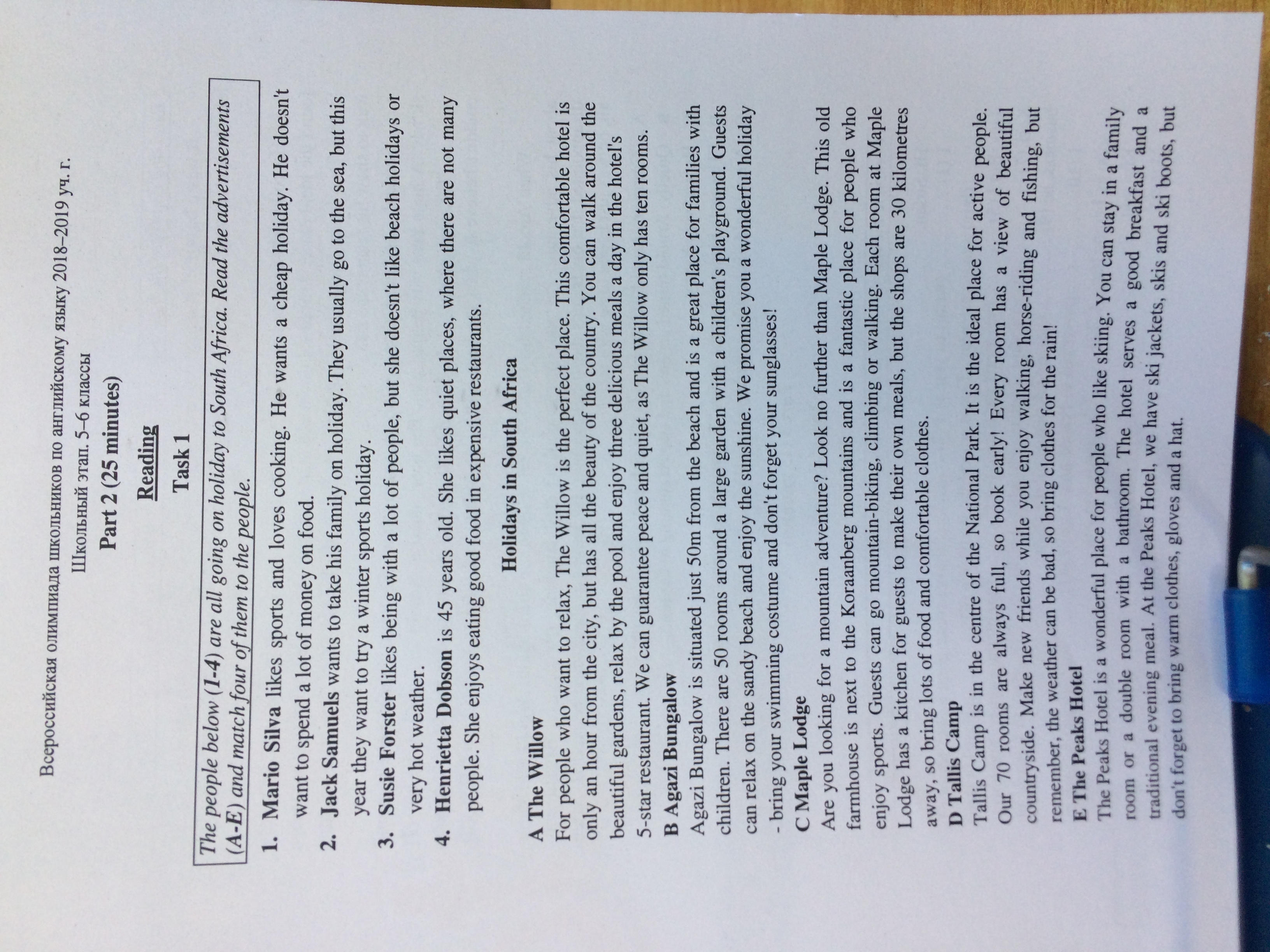 Второму подходит отдых под буквой В