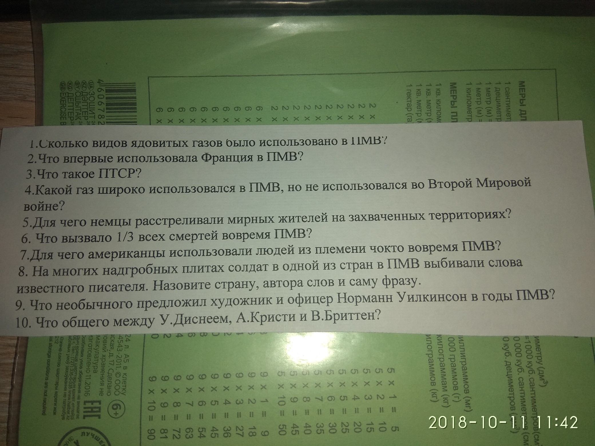 1)Хлор,фосген, слезоточивый газ,иприт;