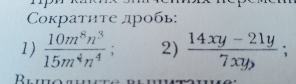 14xy-21y/7xy= 7y(2x-3)/7xy=2x-3/x - в числителе первоначальной дроби вынесла 7y за скобки и сократила дробь на 7y.