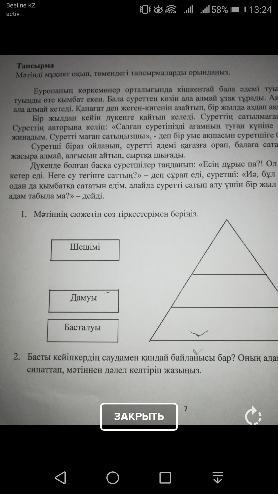 Шешімі:суретші біраз ойланып,суретті әдемі қағазға орап,балаға сатады.