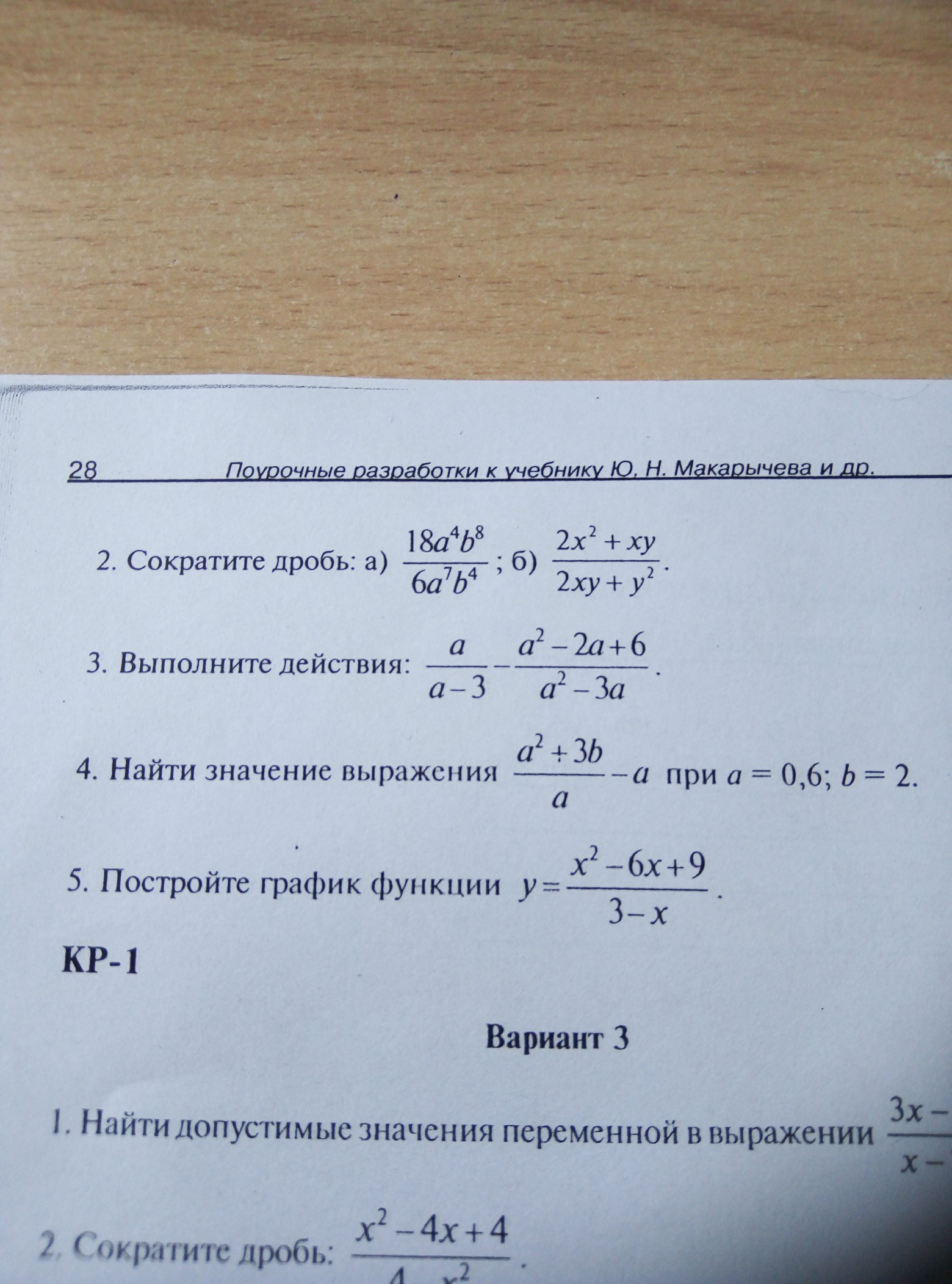 5. y= (x² -6x +9)/(3 -x) = (3 -x)² / (3-x) = 3- x , только если x ≠ 3