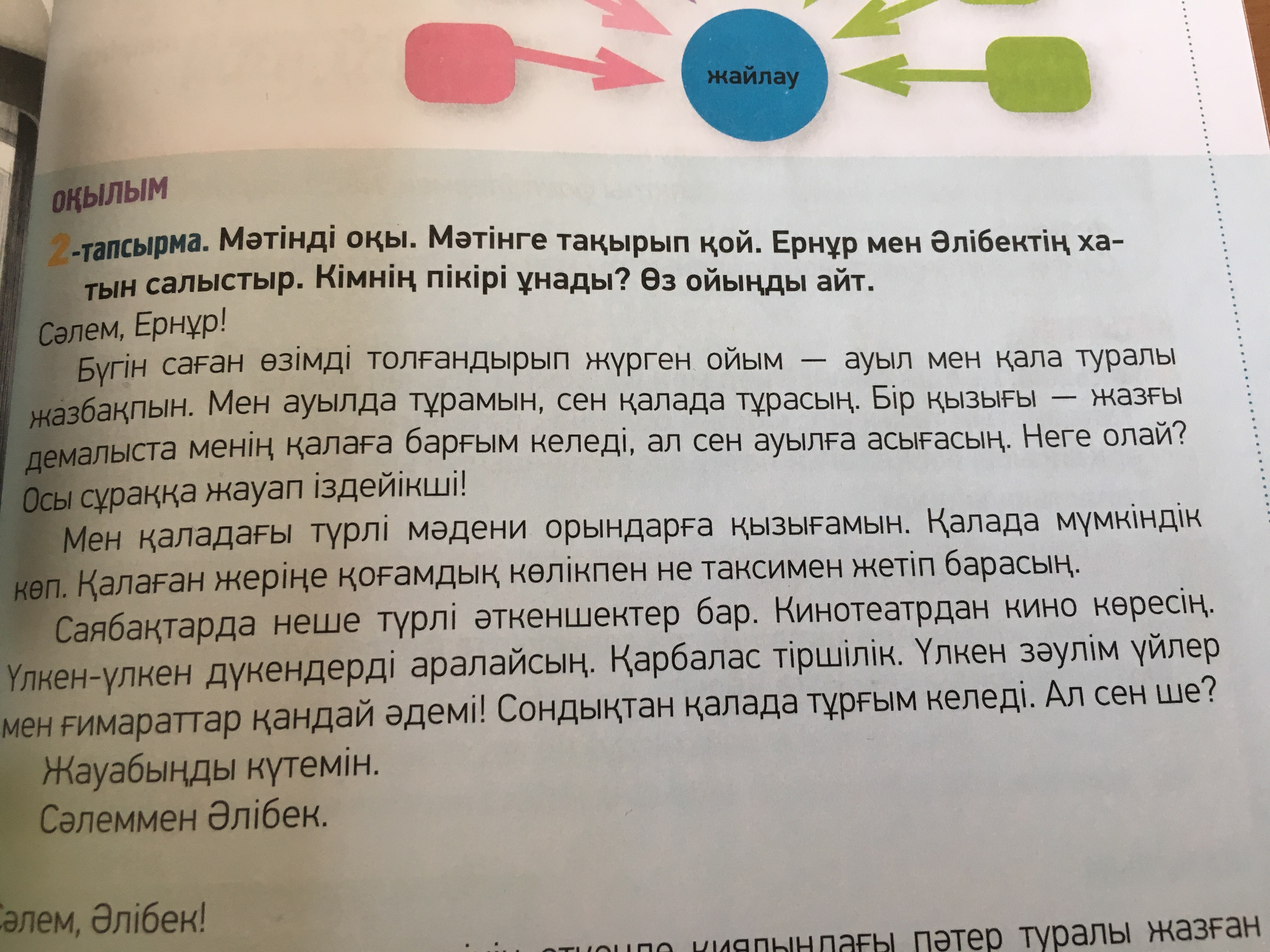 Сегодня я пишу тебе о деревни и городе.Я живу в деревней, а ты в городе.Мне это интересно-в летним каникуле я хочу пойти в городу, а ты в село.Почему?Давай ответим к эту вопросу.Я интересуюсь городские здание.В городе есть много возможность.Можно идти в машине или в такси на любою месту.В парке есть многое качели.Можно смотреть кино в кинотеатре.Сделаешь шоппинг в магазине.Большое здание они так красивое.И поэтому хочу жить в городе.А ты?Жду ответ.Алибек