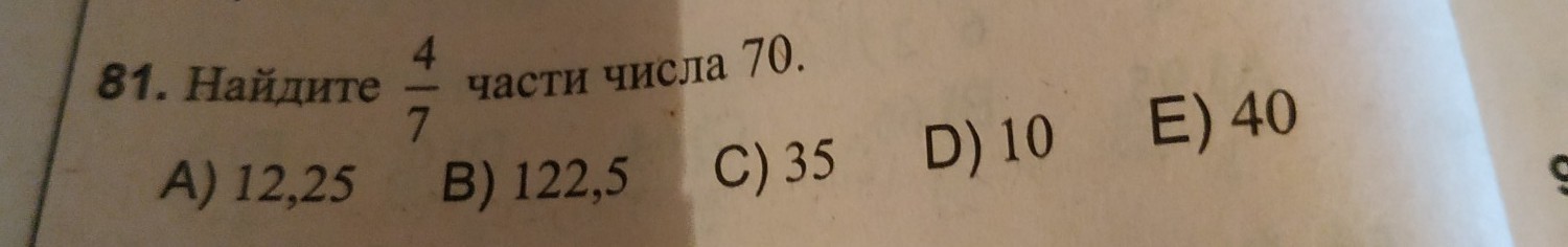 70 поделить на 7 равно 10, после умножаем на 4, значит 40