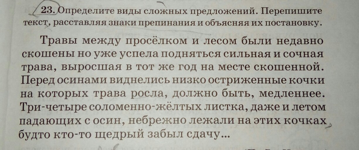 Травы между проселком и лесом были недавно скошены, но уже успела подняться сильная и сочная трава, выросшая в тот же год на месте скошенной. (союзное, сложносочинённое)