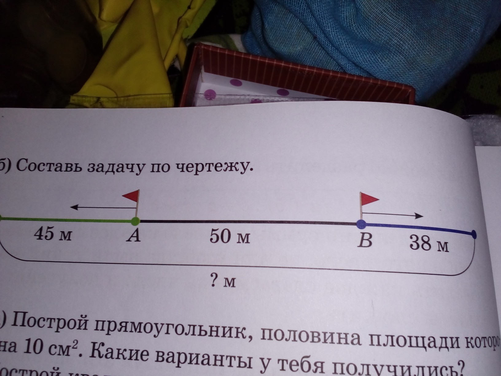 Первый велосепедист проехал 45м от точка А до начала , а второй велосепедист проехал 38м от точки В до конца.Между точками А и В 50 м .Сколько всего длиной дорога (отрезок) ?
