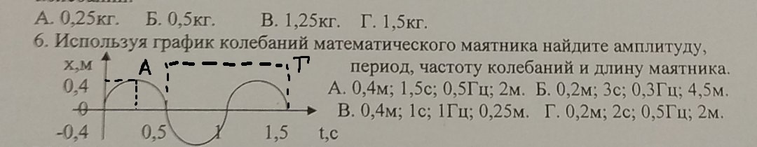 Амплитуду и период находим по графику, всё остальное считаем сами, число пи и g - постоянные велечины