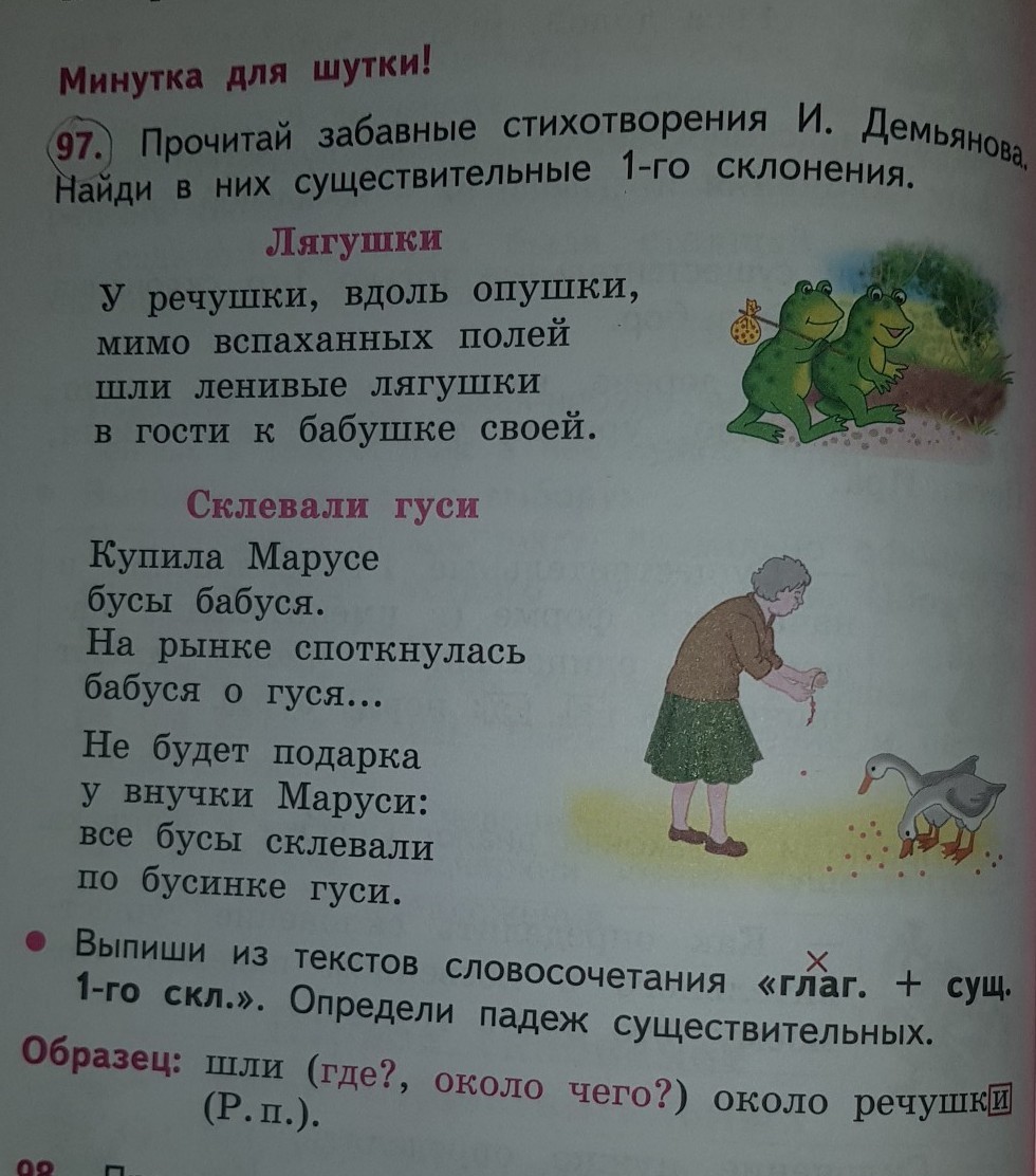 прочитайте забавное стихотворение и. демьянова найди в них существительные 1 склонения. помогите пожалуйста очень срочно