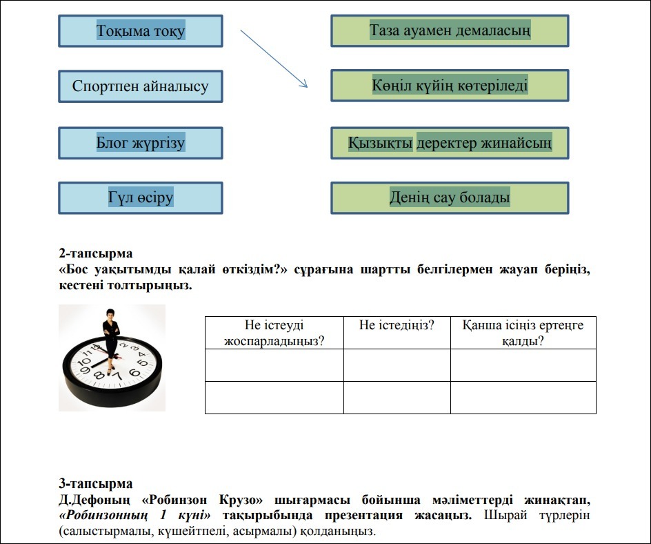 Мәтінді түсініп оқып, тапсырмаларды орындаңыз. Төмендегі ермек істер (хобби)