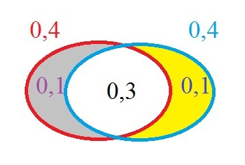 В магазине работают два продавца-Вася и Сергей .Каждый из них может быть занят с клиентом с вероятностью 0,4.При этом вероятность их одновременной занятости с клиентом-0,3.Надите вероятность того что в случайный момент времени занят будет только Вася, а Сергей свободен.