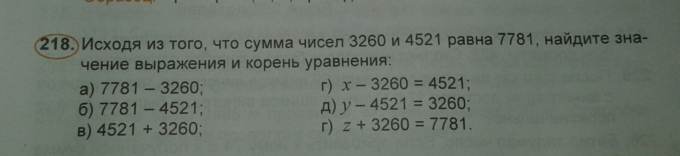 исходя из того что Сумма чисел 3260 и 4521 равна 7781 найдите значение выражений корень уравнения