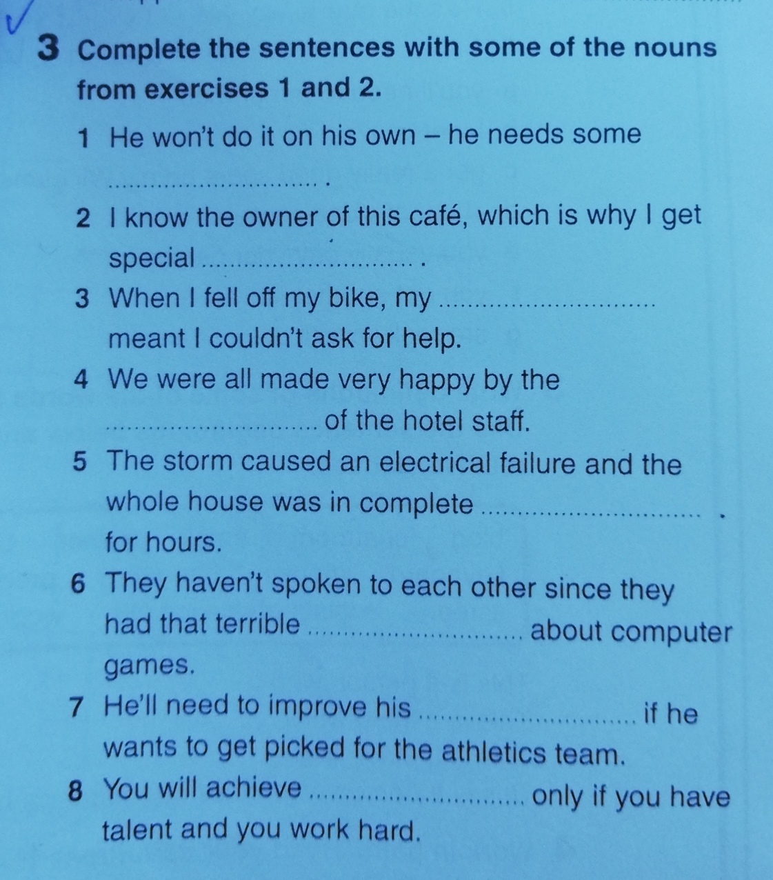argue, argument, arrange, arrangent, dsek, darkness, embarrass, embarrassment, encourage, encourgement, fit, fitness, friendly, friendliness, great, greatness, treat, treatment, weak, weakness