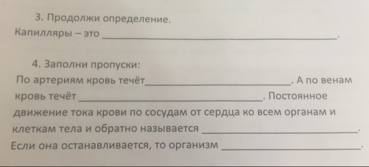 1. артериальная 2. венозная 3. кровообращение 4. умирает