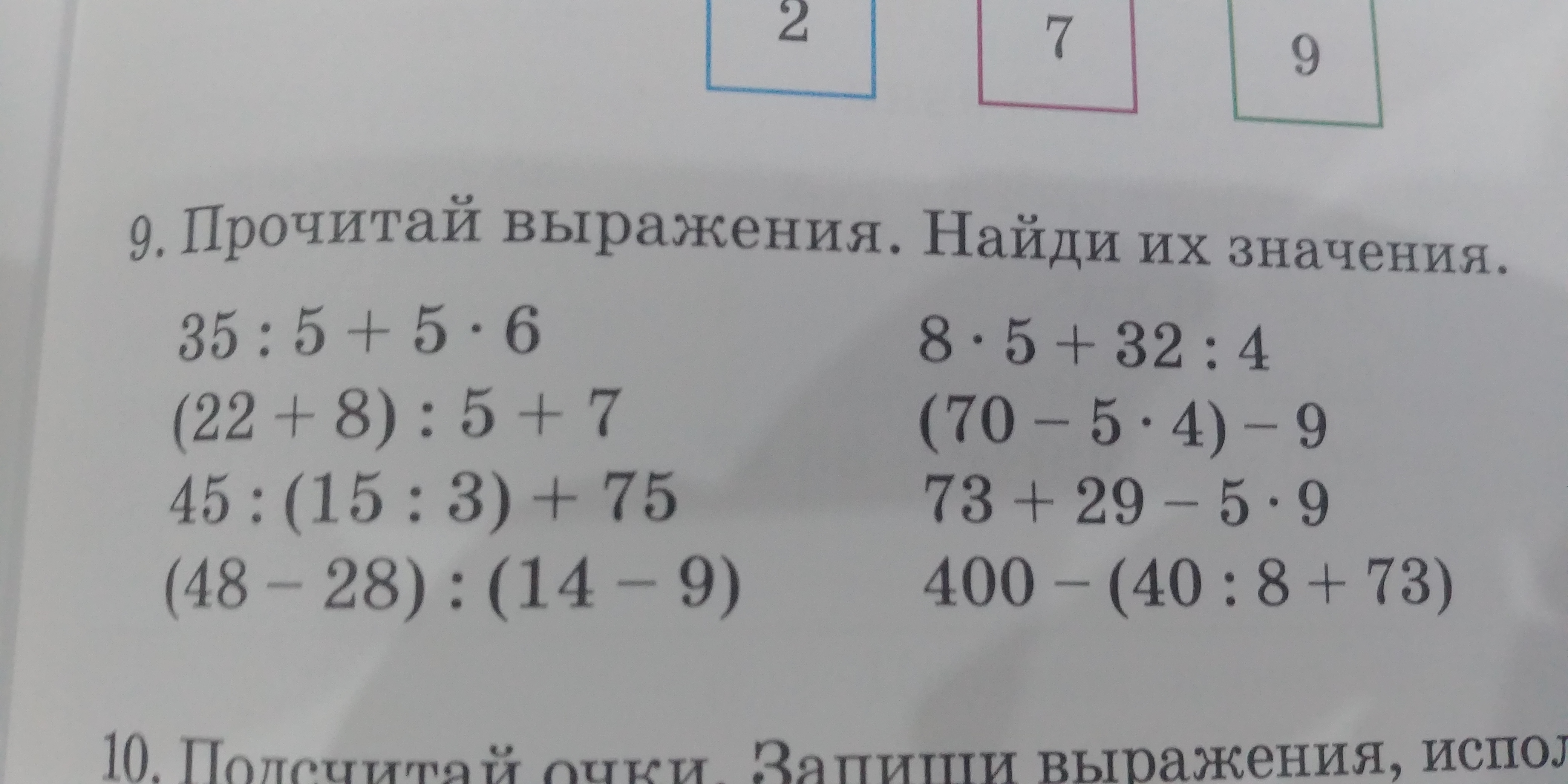 (48-28):(14-9)=4 400-(40:8+73)=322