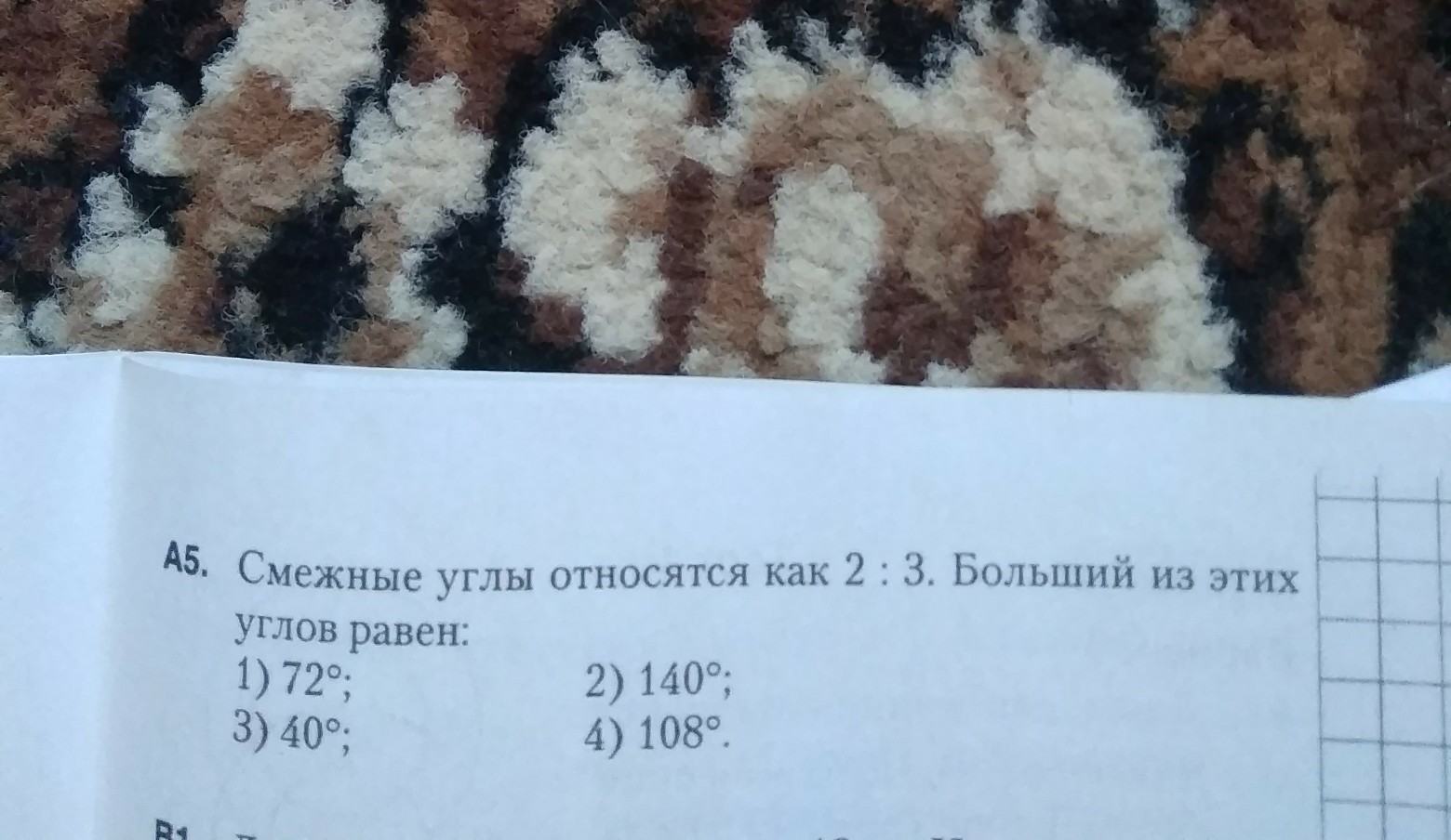 Отношение смежных углов в задании 2:3 - всего 5 частей.