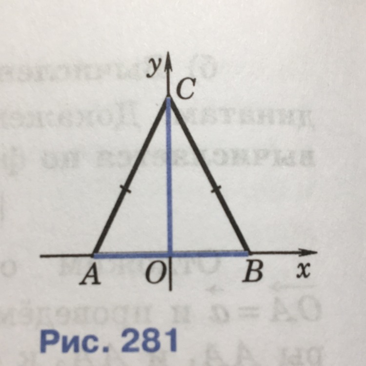Найдите координаты вершин равнобедренного треугольника ABC изображённого на рисунке, если AB=2a, а высота CO равна h