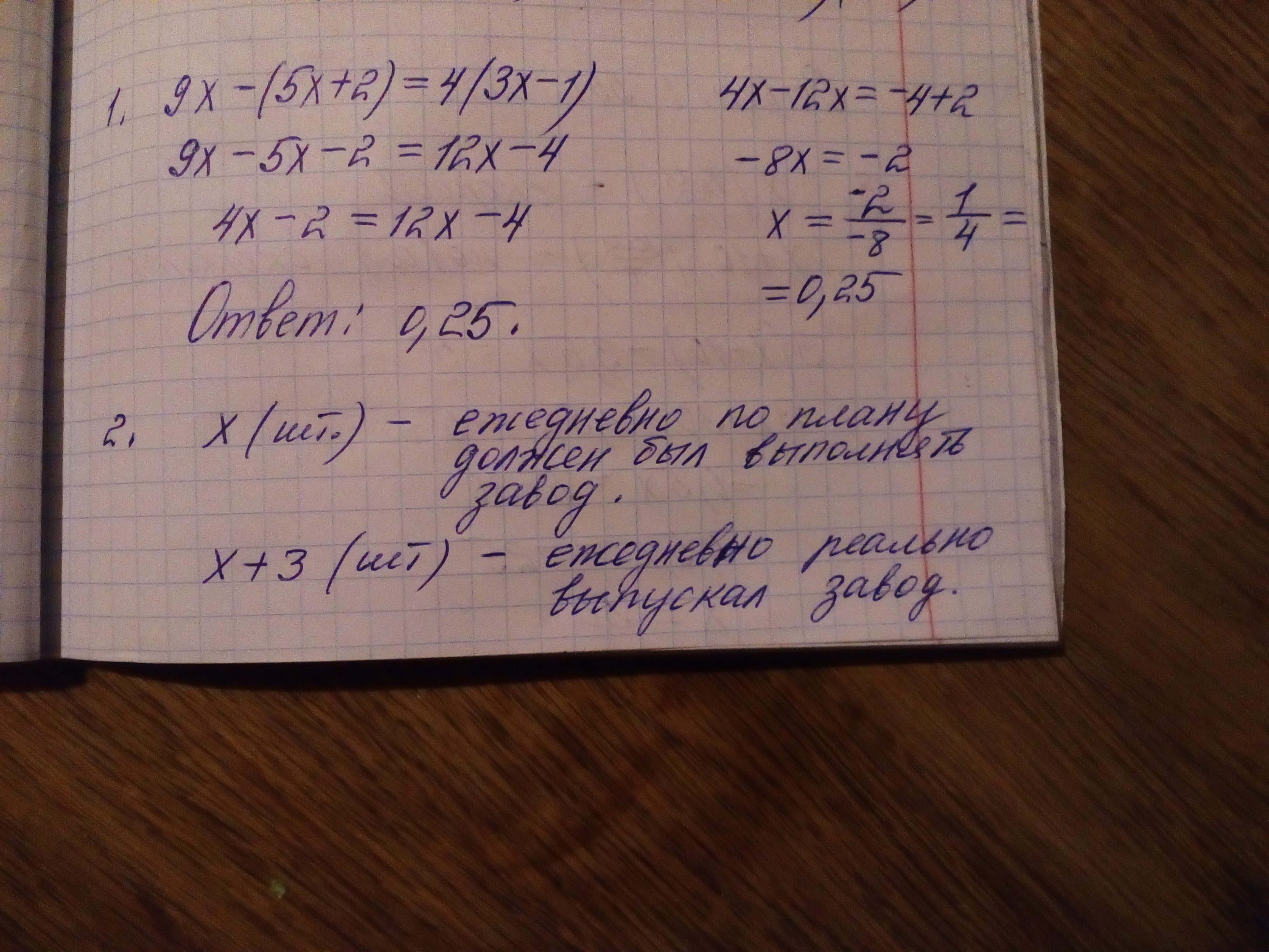 1)9х-(5х+2)=4(3х-1)