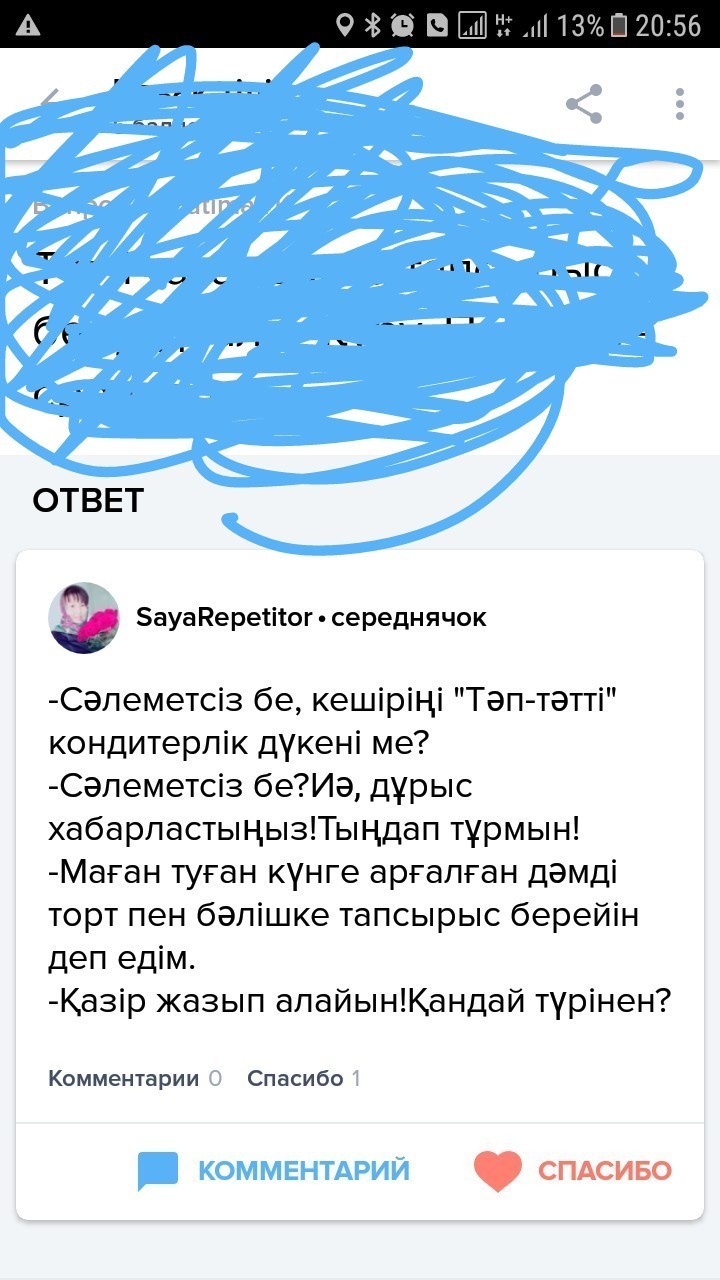 -Сәлеметсіз бе? Өтініш маған тәтті тоқаш пен үлкен торт керек еді.Әжемнің 70жас тойына.