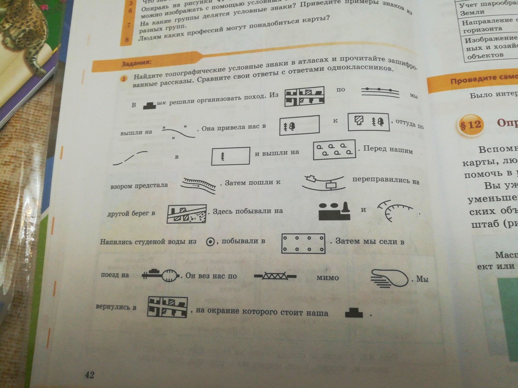 найдите топографические условные знаки в атласа и притайте зашифрованные рассказы. Пожалуйста скоро в школу