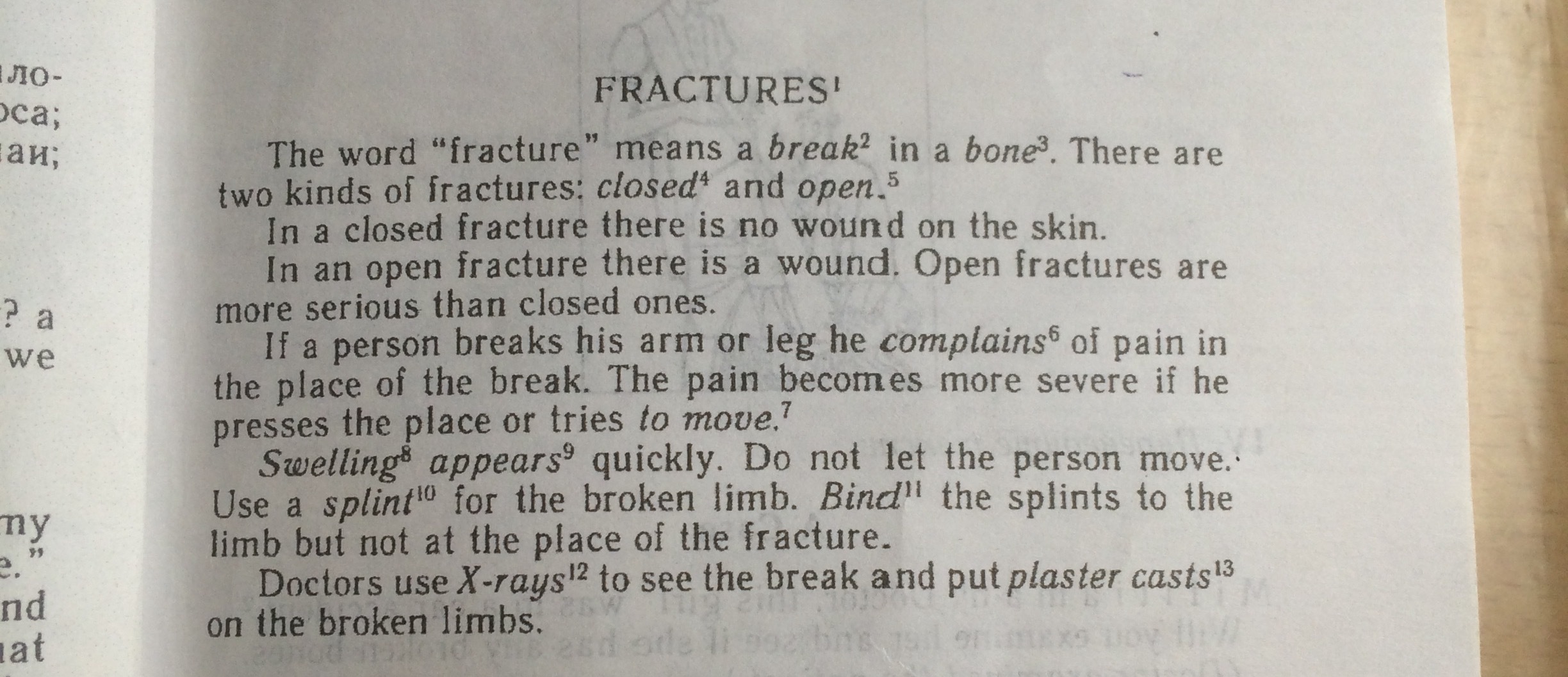 Слово "перелом" означает прелом кости. Бывает два вида перелома: закрытый и открытый.