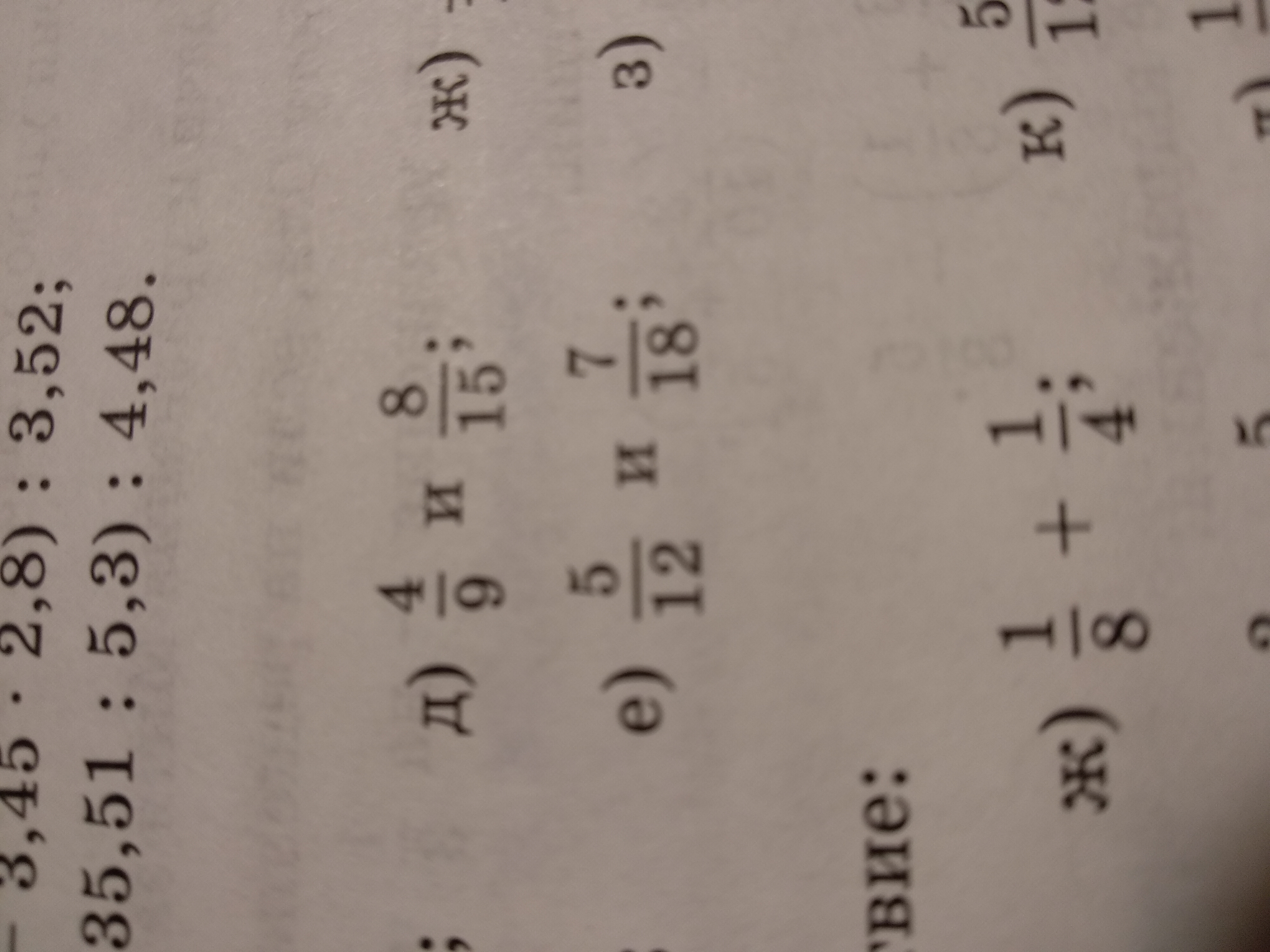 15/36 больше 14/36, значит 5/12 больше 7/18