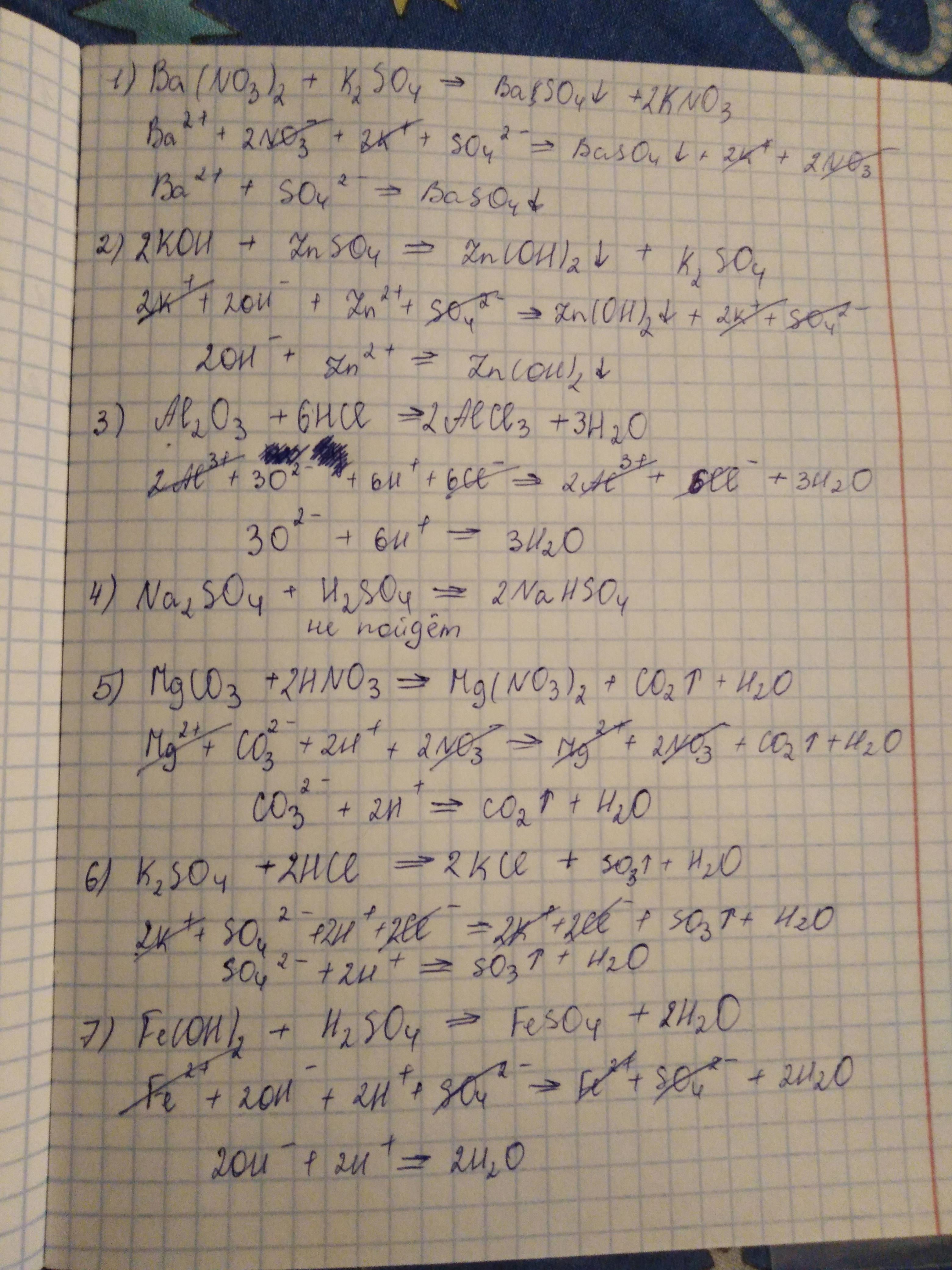 Напишите ионные уравнения возможных реакций между следующими веществами: