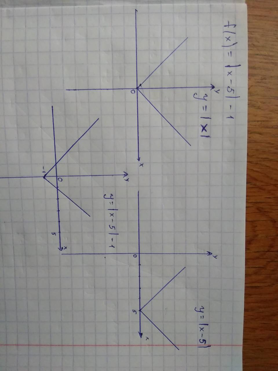 Все нарисовано поочередно - y=|x| => y=|x-5| => y=|x-5|-1