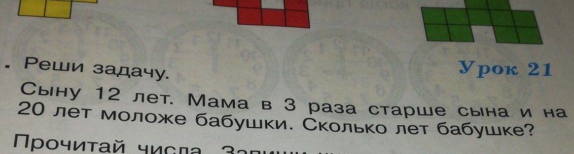 сыну 12 лет. мама в 3 раза старше сына и на 20 лет моложе бабушки. Сколько лет бабушки????